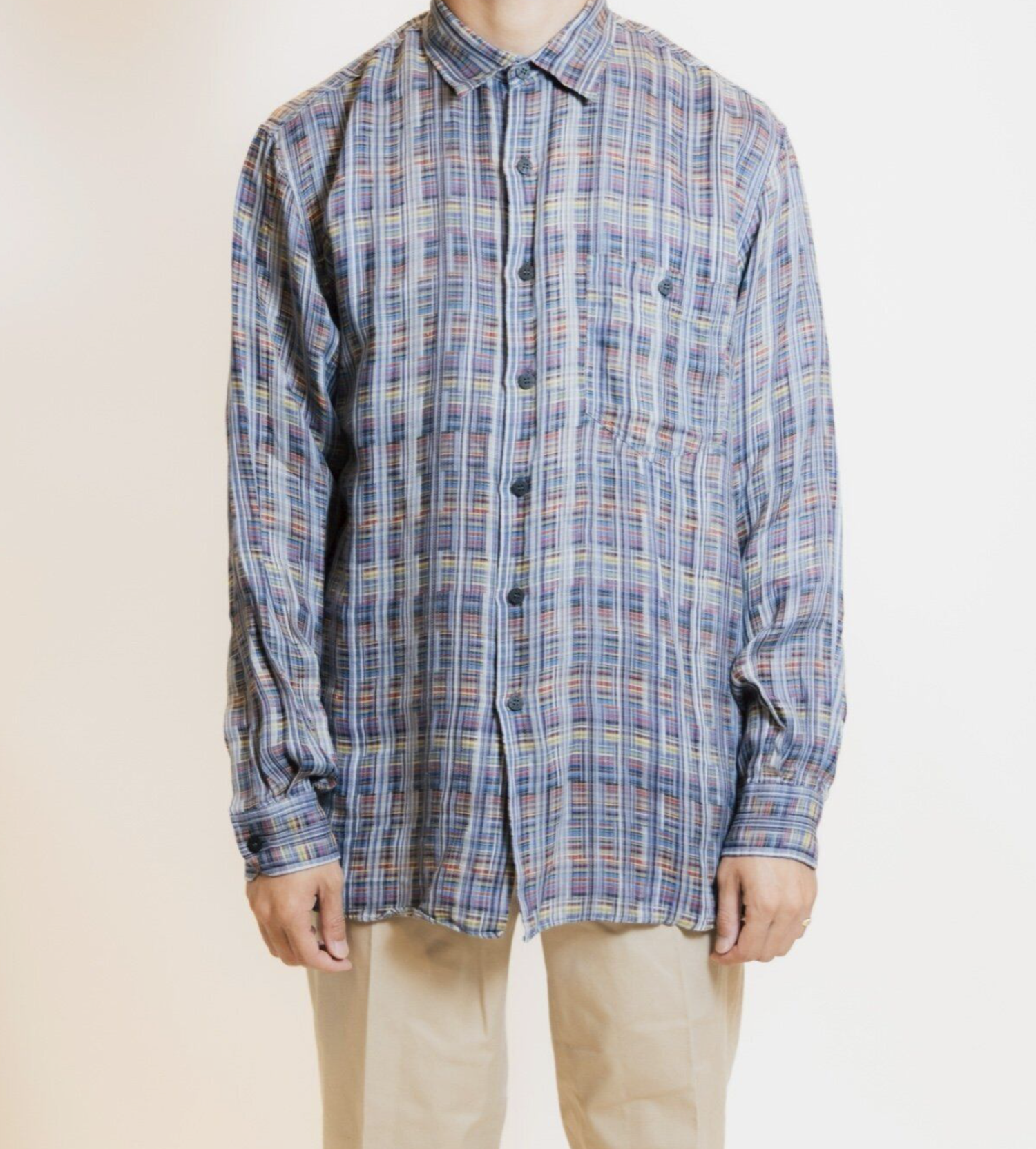 ミッソーニ リネン チェック シャツ【90's MISSONI Linen Check Shirt】 美しい色彩と上質な素材、細かな仕立ては、まさにミッソーニを象徴するようなアイテム。 やや大きめなシルエットは古着市場でもあまり出てこない希少なサイズ感。 おすすめしたい1着だ。